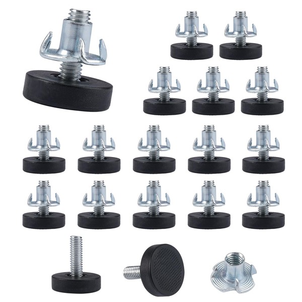 Pack of 16 Threaded Table Leveling Feet Long, M6 x 18 mm Adjustable Legs with T-Nuts Furniture Leveling Feet, Metal Screw Adjustable Table Legs, Glide Levelers for Table, Chair, Furniture Legs