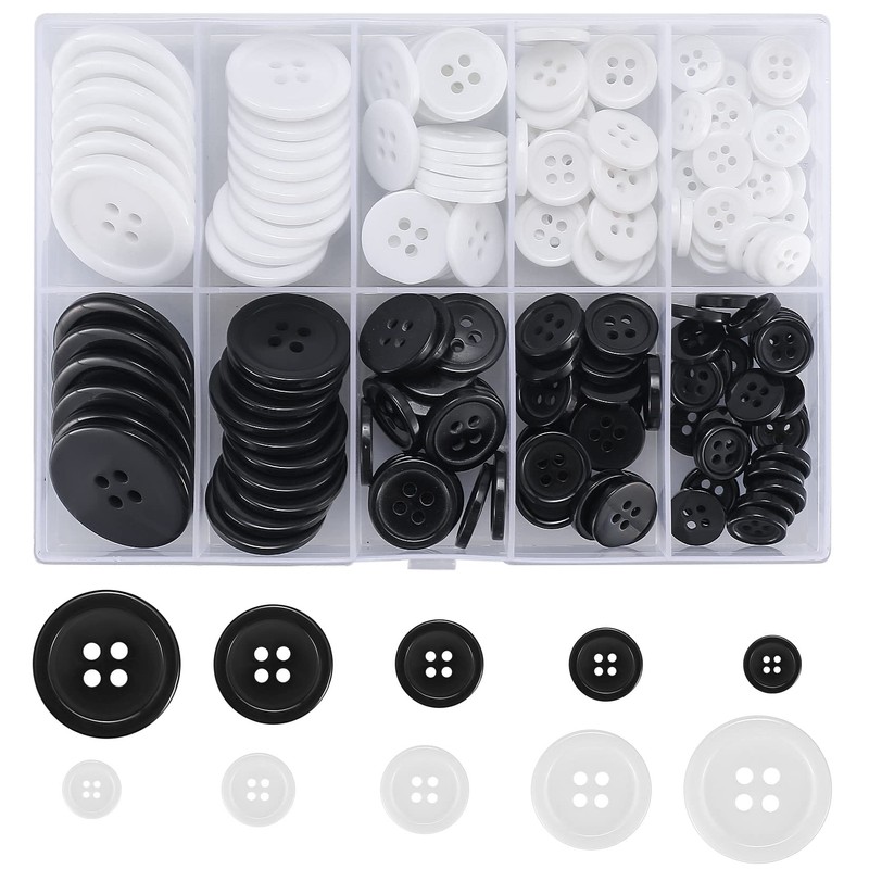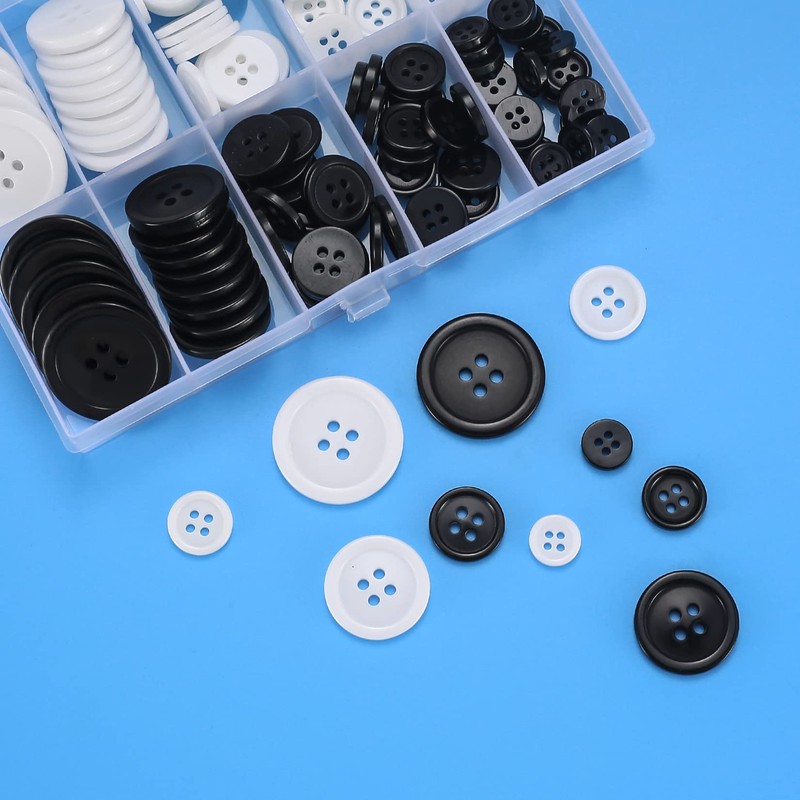 - 4 HOLE DESIGN Sewing buttons have a 4 hole design and are available in white and black. It is very easy to sew and does not fall off clothes easily. Perfect for home or on the go for quick clothes repairs.