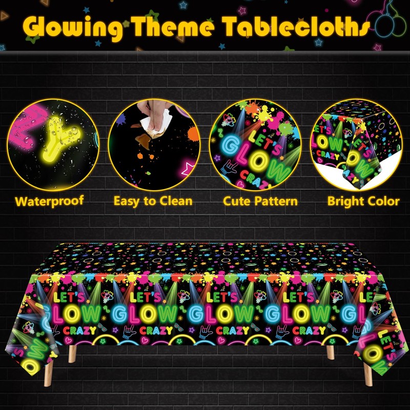 - Easy to use and clean: Glow party set is easy to use. Tablecloth can be used directly to cover your desktop. Simply unfold and place it on the table, then you can use it. And if it gets dirty, you can easily clean it with a cloth or paper! Banner has been strung up, you just need to string them up to hang. It can save you a lot of time to enjoy the party with your friends!