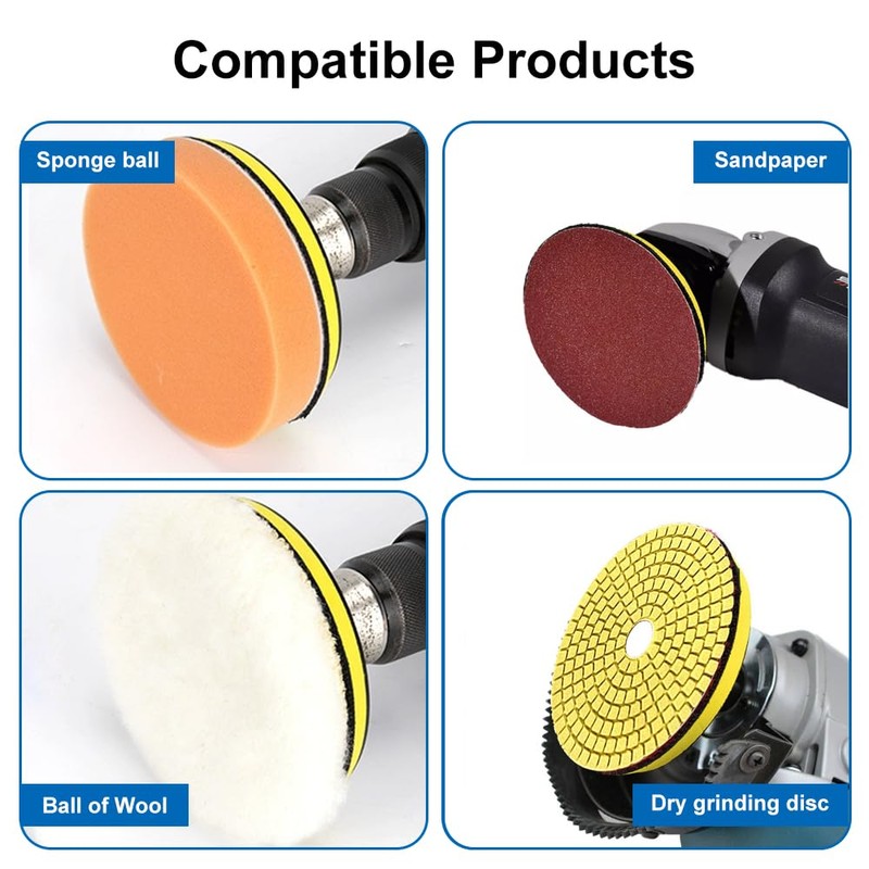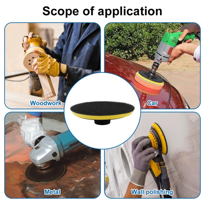- Wide tool adjustment: polishing pad 125 mm Velcro perfectly compatible with various tools such as gun drills, angle grinders, table grinders, etc. (require a 10 mm shaft diameter or with a conversion ring), ready to use. It can also be connected with various polishing agents, such as sandpaper polishing discs, sponge wax polishing pads, wool pads, etc.