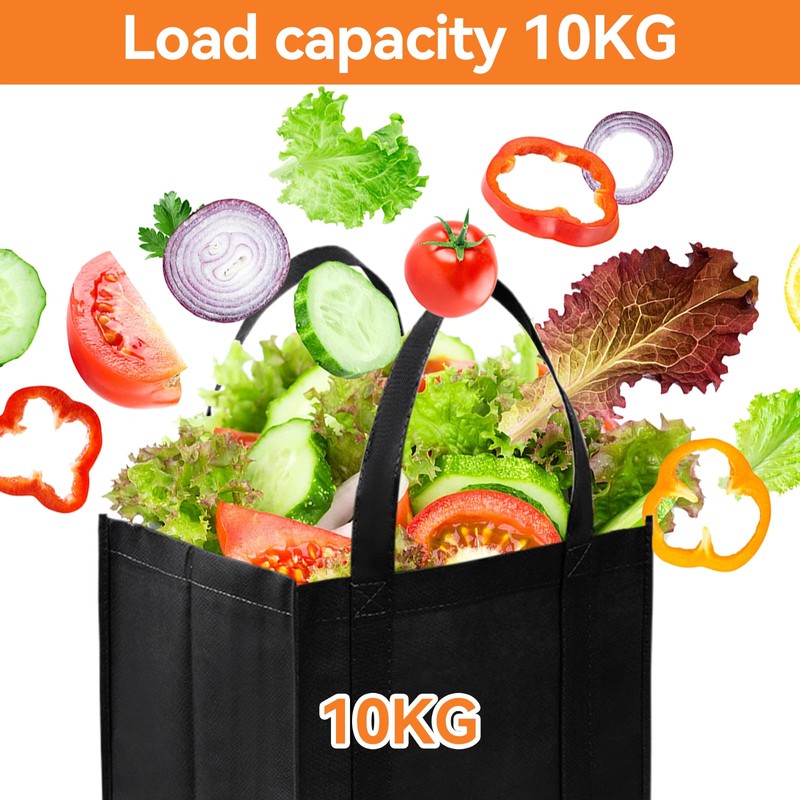 - Black shopping bag: 2 black foldable shopping bag with handles in the package, shopping bag large has a maximum load capacity of 10 kg, it is a stylish and reusable shopping bag.