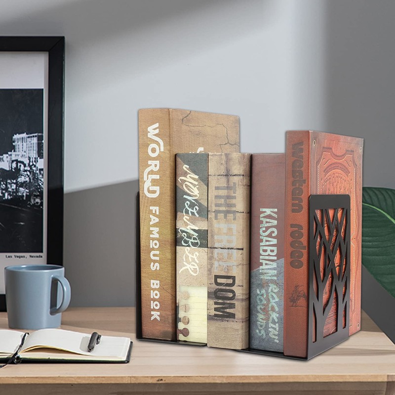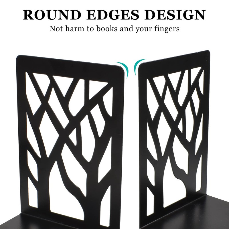- ️ BOOKENDS: Comes with 1 pair of black metal tree shadow style bookends. The size of the bookends is 12/9/16.5 cm (L/W/H). It is suitable for keeping your books tidy.