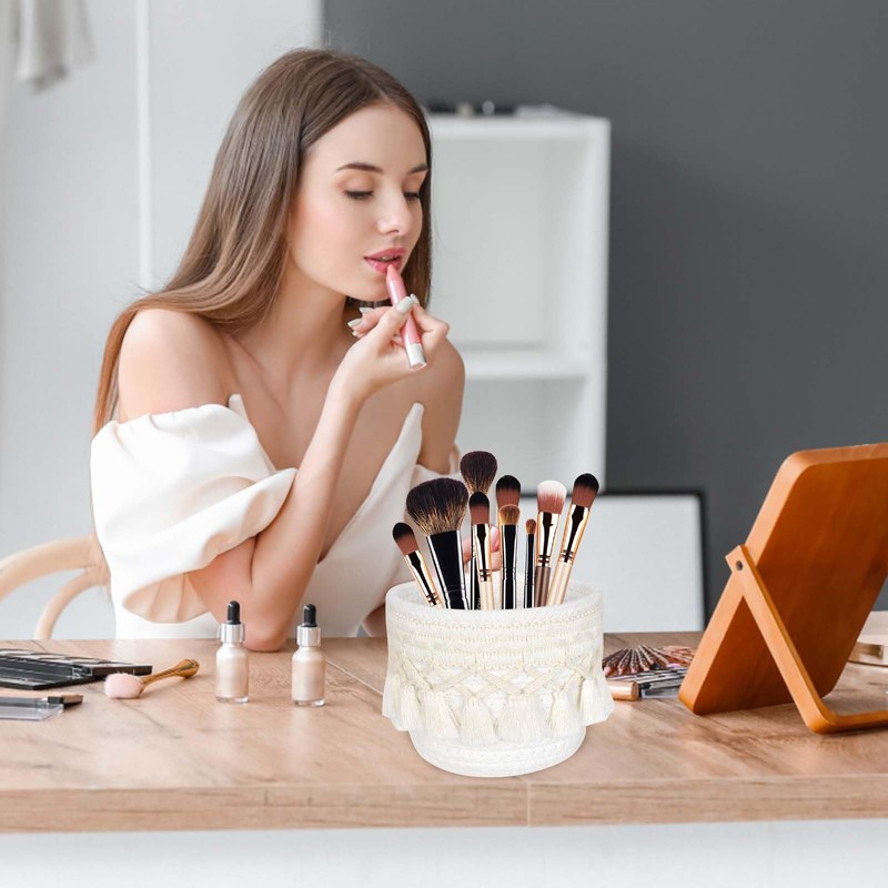 - High-quality material: the cosmetic brush holder is made of high-quality cotton rope, sturdy and durable, beautiful and practical. Its durable construction ensures the safety of your makeup brushes.