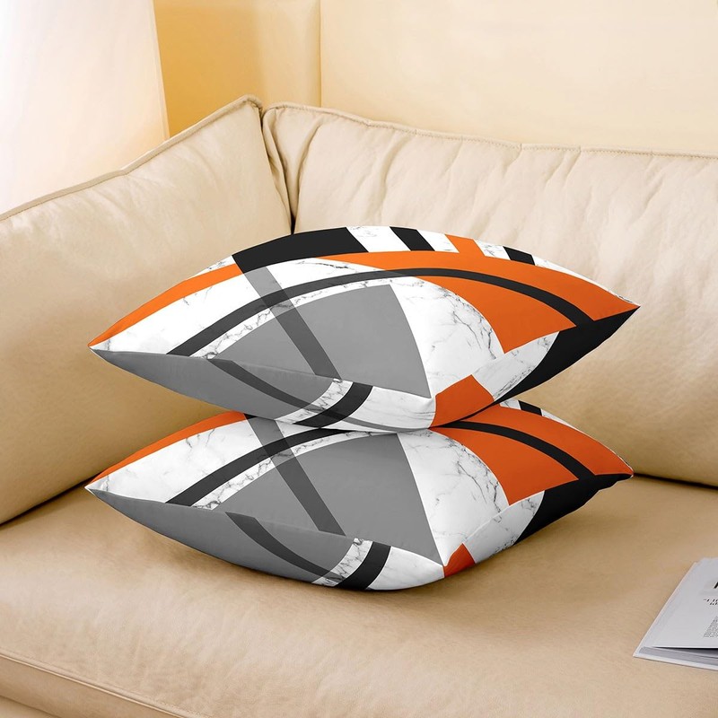 Pack of 2 Burnt Orange Grey Geometric Throw Pillow Covers 22x22 Inch Patchwork Gray Geometry Triangle Stripe Pillow Covers Black White Marble Cushion Cases For Kids Adults,Simple Line Pillow Cases