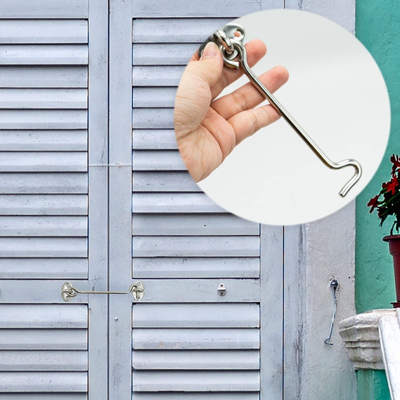 - Wide application: the latch can be used for locking windows, shutters, barns, sliding doors and double doors, gates, garage doors and shed doors. The hook can also be used as a stopper for a door or window.