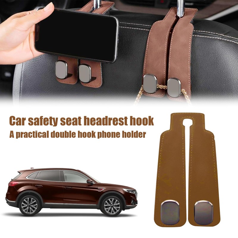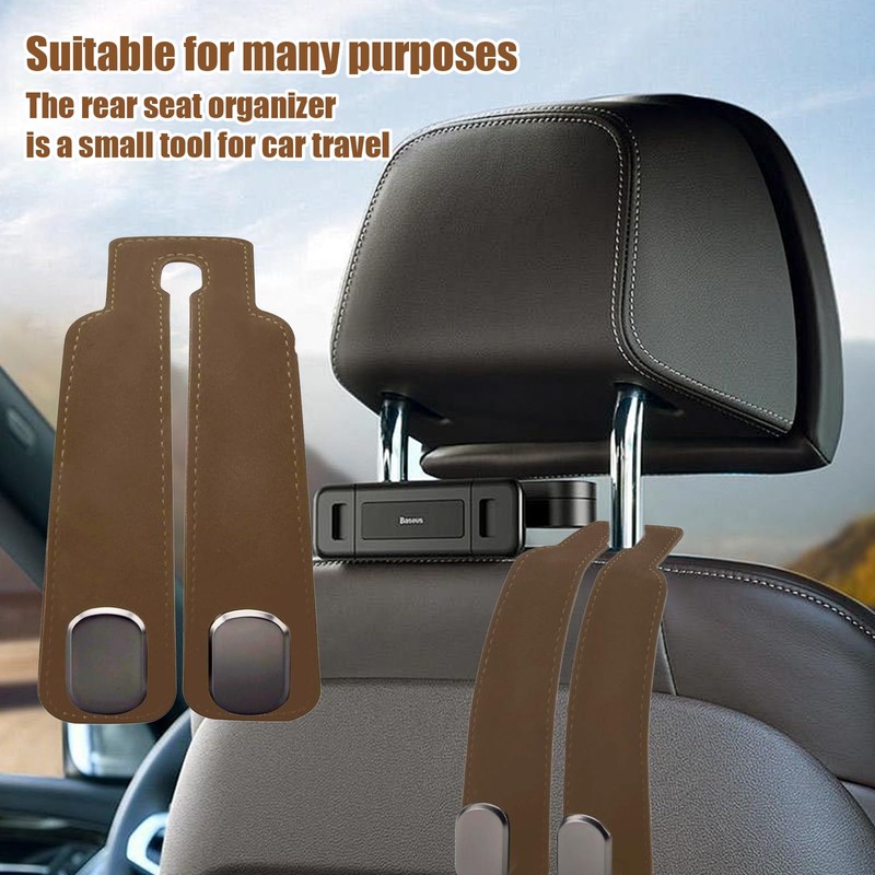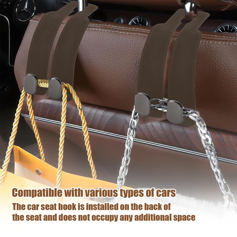 Pack of 2 Car Storage Hooks, Universal Back Seat Hooks for Headrests, High-Quality Leather Material, Flexible and Rotating Design, Bag Hook for Car Seat Storage