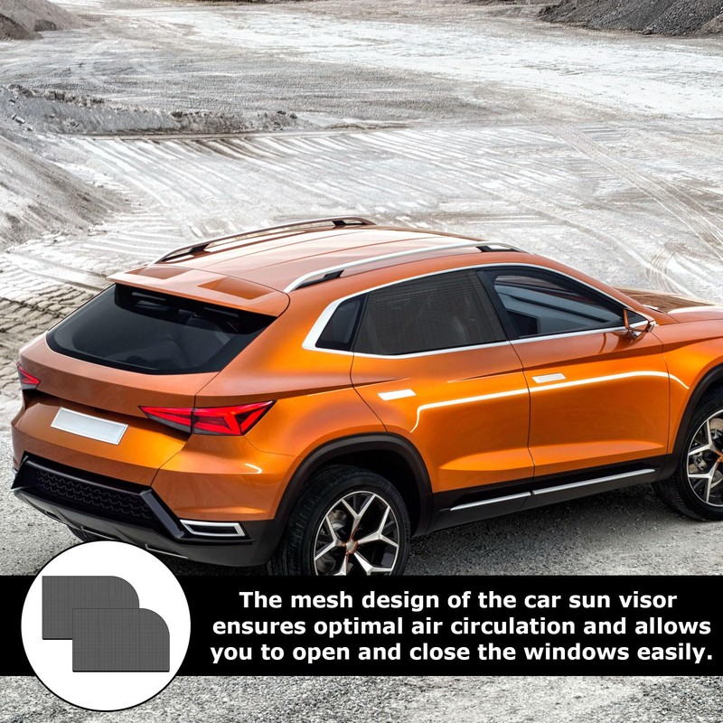 • Breathable and comfortable: the mesh design of the sun protection car side window ensures optimal air circulation and allows easy opening and closing of the car window. Enjoy fresh air and a beautiful view while protecting you from strong sunlight and insects. The precise weaving technology not only ensures a cool and comfortable interior, but also protects your vehicle interior from premature ageing due to UV radiation.