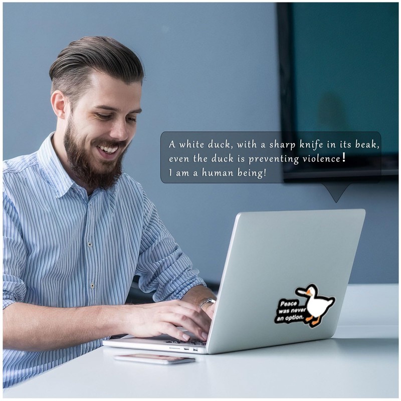 - PERSONALISED DESIGN This is a duck with a knife in its mouth symbolizing "stop fight". We use this to promote peace! The white duck is weak but strong, and her behavior shows the desire for "peace." At the same time, it shows what you love think in your heart!