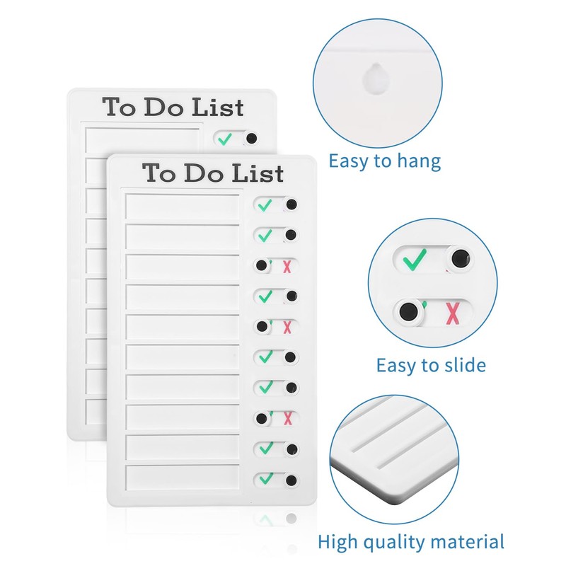 - TO-DO BOARD: Our set contains 2 control boards and 10 blank papers to meet your daily needs. The checklist reminds you of what you want to achieve each day and keeps you on track.