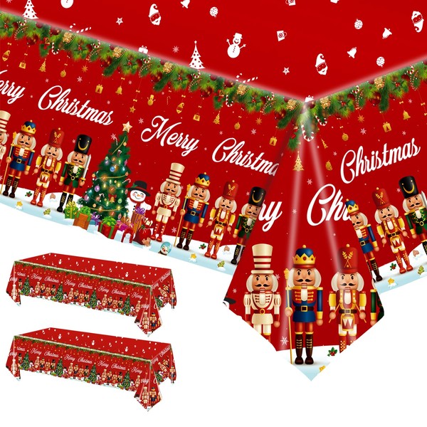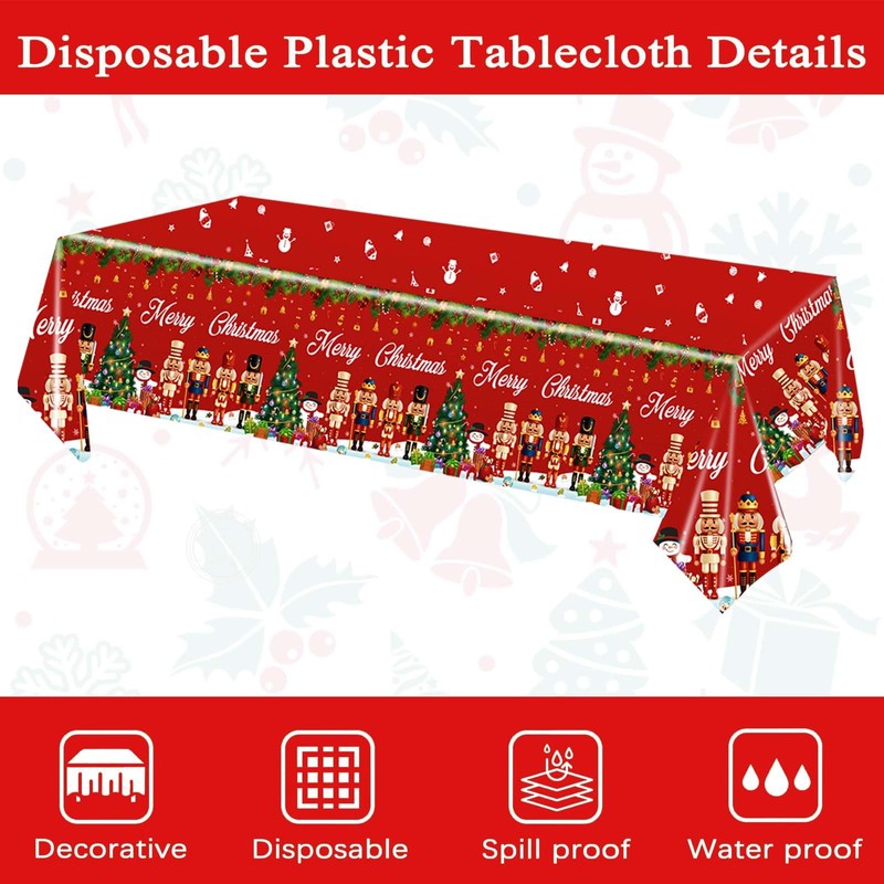 Pack of 2 Christmas Tablecloth, Rectangle Christmas Waterproof Tablecloth for Table Decorations, 137 x 274 cm, Christmas Nutcracker Plastic Tablecloth for Christmas, Holiday, Winter Party Accessories