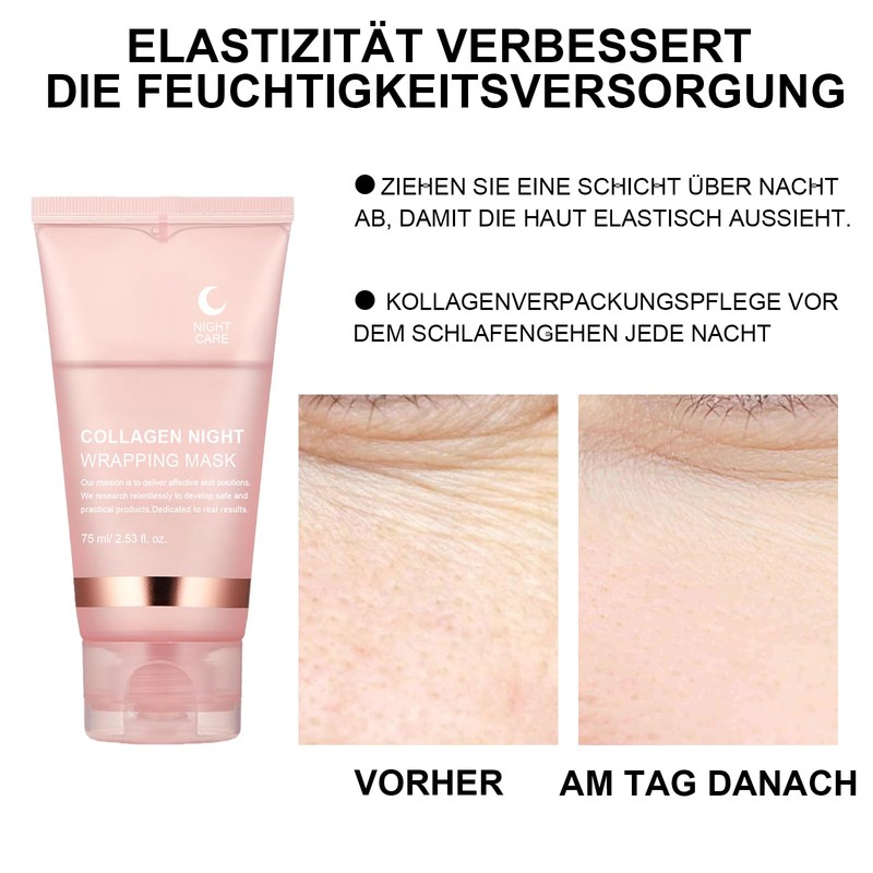 - Deep hydration: the triple collagen complex in this collagen night mask penetrates the deepest layers of the skin and provides the skin with a triple collagen complex for deep moisture and improved elasticity.