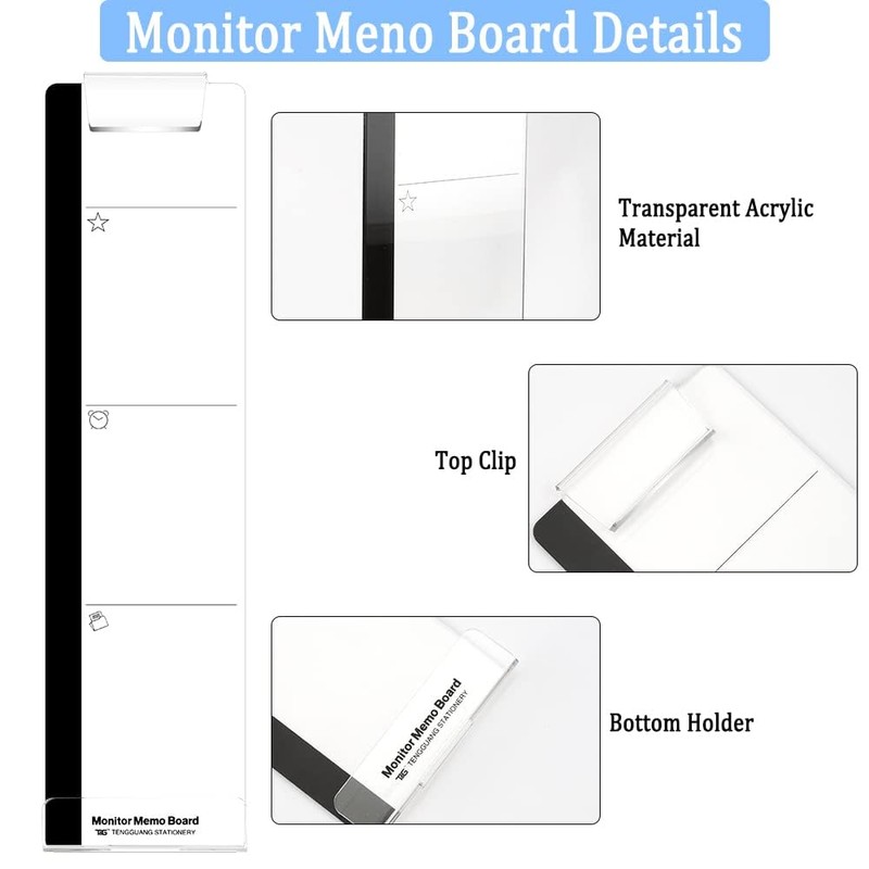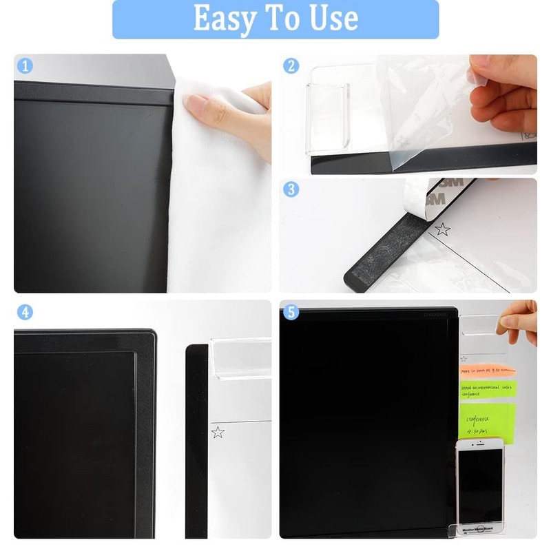 - Premium quality material: this computer monitor sticky note board is made of durable clear acrylic, waterproof and stain resistant, simple and fashionable appearance, it has an adhesive strip to attach it to the side of the monitor. The clear acrylic sticky note holder serves as a workplace accessory, making it easy to recognize the sticky notes.