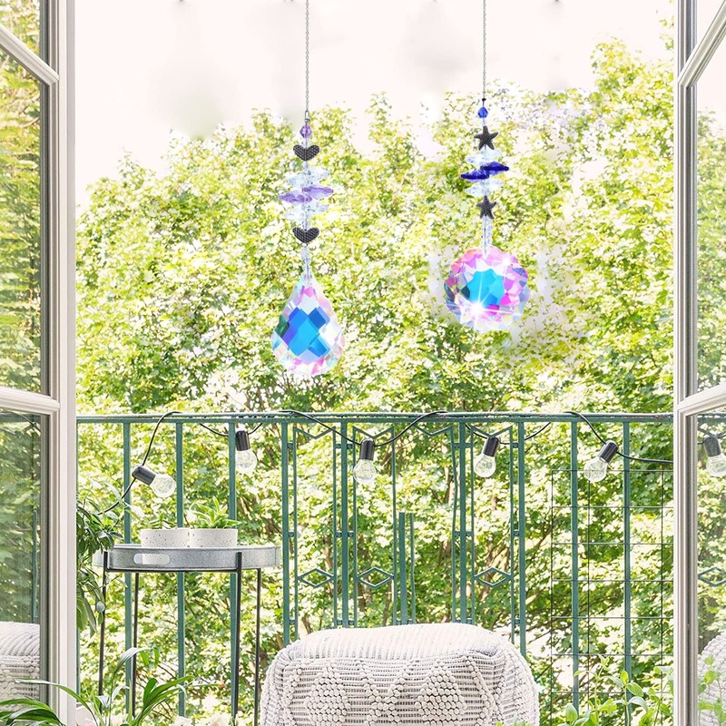 - Unusual decoration: these exquisite crystal suncatchers in sunlight will bloom their beauty as a rainbow maker, adding romantic elegance to the entire room.They not only have the rainbow that the crystal ball prism has caught but also the multi-coloured light pot that the drop pendant brings.