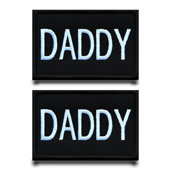 • Patch with embroidery: 2 pieces 8 cm x 5 cm "Daddy" funny patch with hook closure on the back and a matching loop closure which makes it a great patch for you