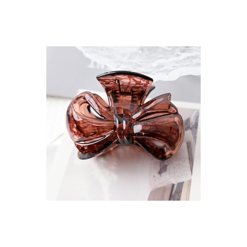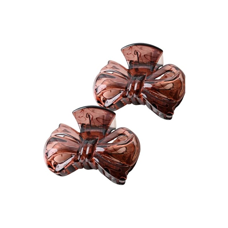Pack of 2 Decorative Hair Claw Clips, Marbled Blue Glass Design, 2 Piece Set (brown)