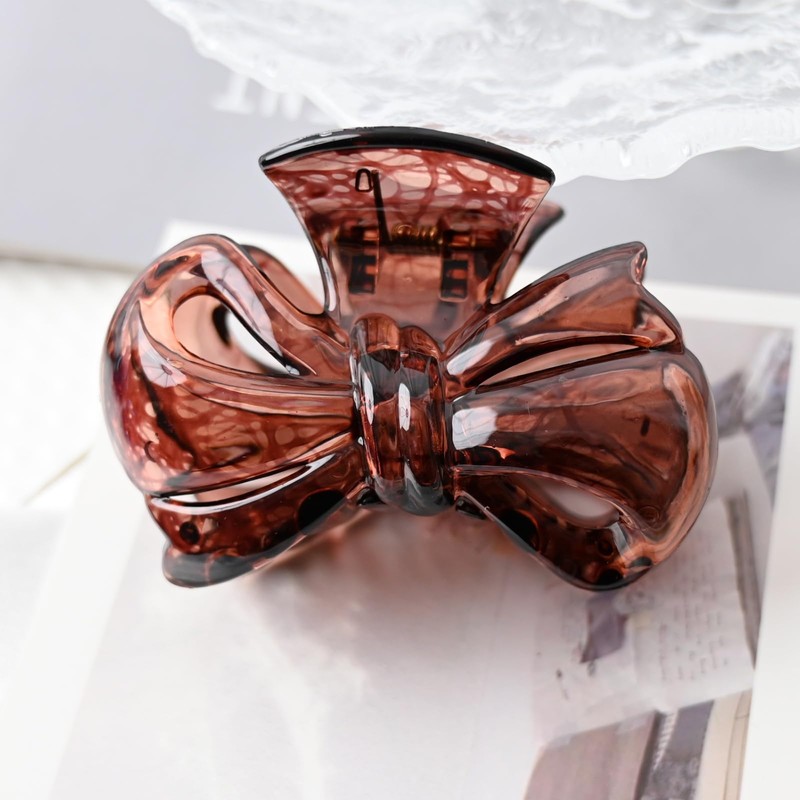 - DESIGN: Large iridescent hair claw clip featuring a pearlescent pink finish with elegant wave-like texture for a luxurious look