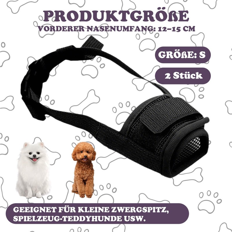 - Dog Muzzle - The dog muzzle size S fits a mouth circumference of 12-15 cm. Please measure your dog's nose circumference and nose length carefully to choose the right size. Dog muzzles are used for safe socialization, vet visits, grooming, or for safe handling of dogs when travelling