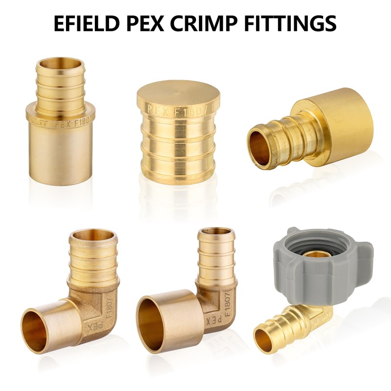 (Pack of 2) EFIELD Pex 1/2" Pex x 1/2" Female NPT Swivel Adapter Barb Crimp Brass Fittings