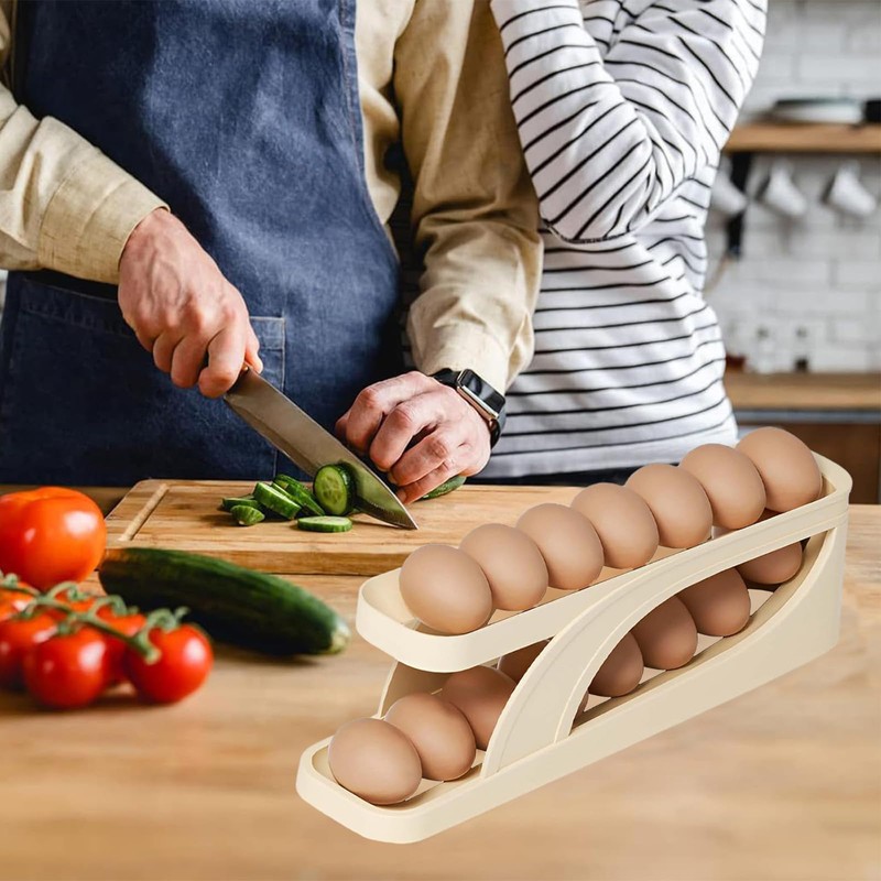 Pack of 2 Egg Holders Fridge, Space-Saving Rolling Egg Dispenser, Stackable Egg Organiser, Space-saving Egg Holder, Egg Storage, Can Hold 15 Eggs for Fridge Storage