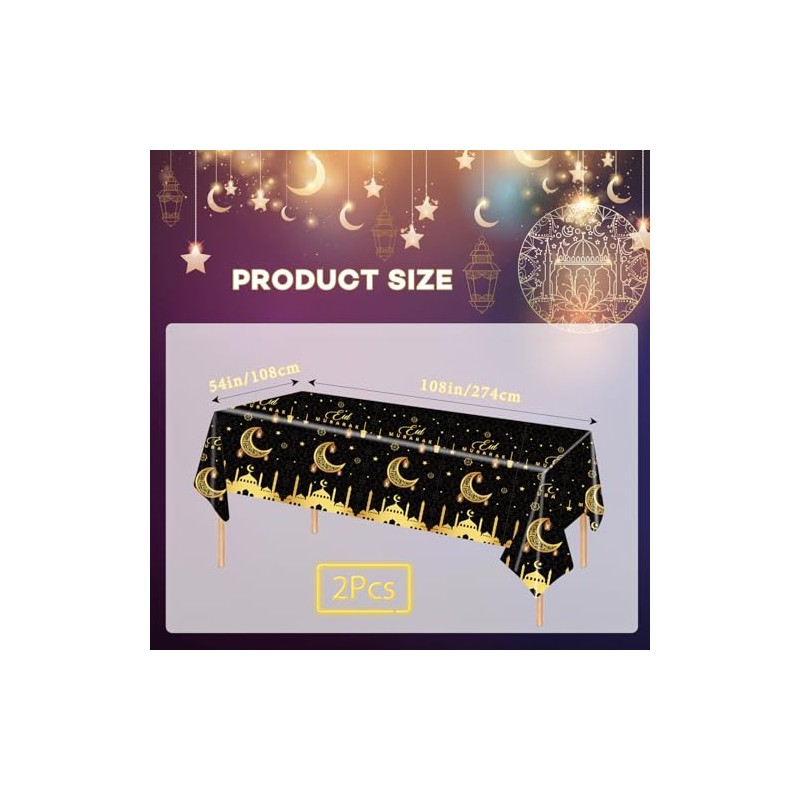 - Versatile use: The Ramadan Mubarak plastic tablecloths are waterproof and leak-proof, which provides your tables with beautiful protection from stains, spills and scratches.