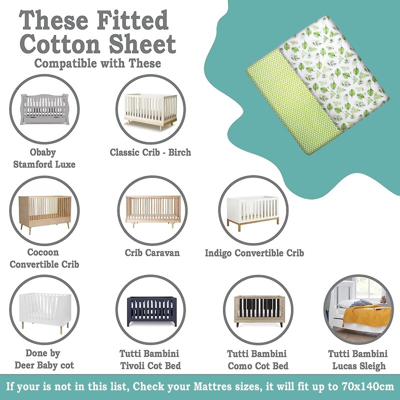 - Size:Package Includes:2 x Fitted Sheets. Fitted sheet 120 x 60 cm and fits up to deep mattresses. These sheets grip and fit better than any other sheet set. The bedding set is designed to fit almost all mattresses. With stretch and durable elastic band, the fitted sheet is designed to fit snugly against your mattress.