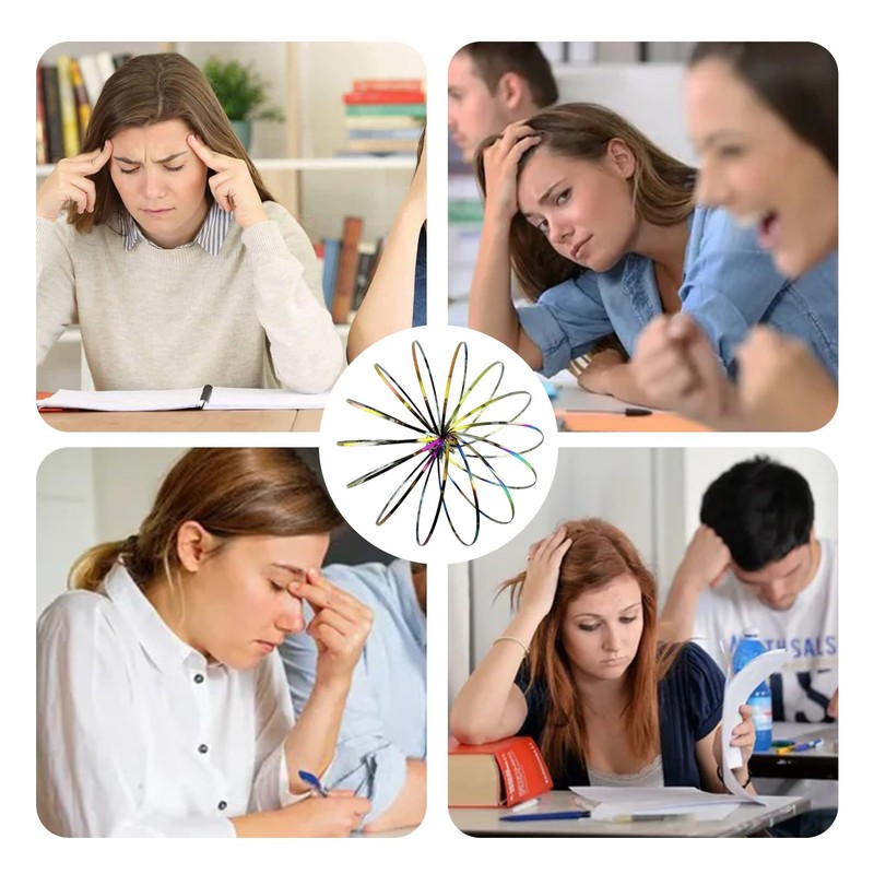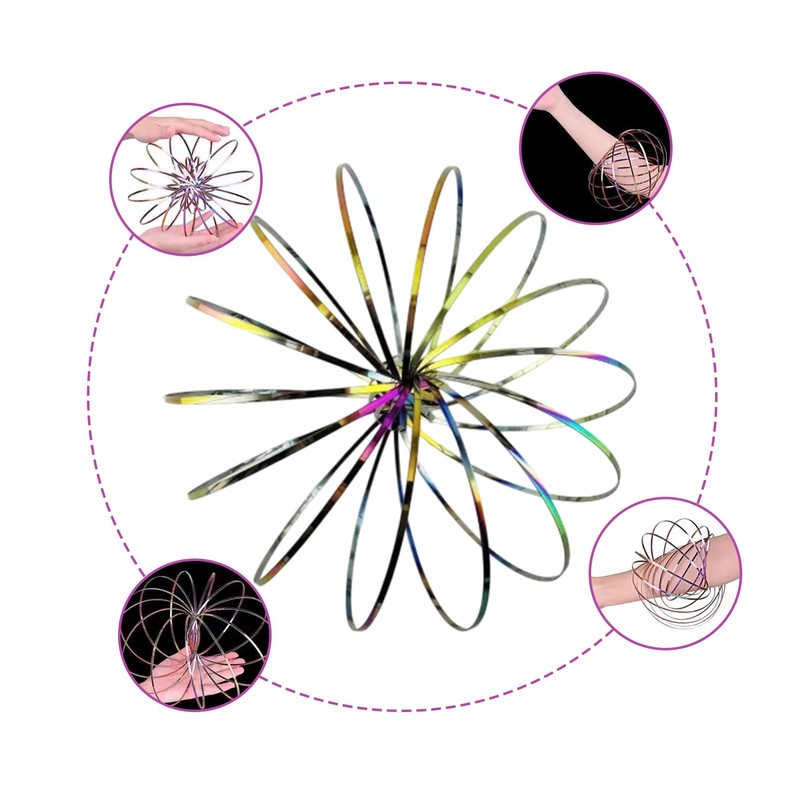 - 1. What do you get? You will receive a 2-piece set of flow rings toys, consisting of 3D arm stainless steel spirals, which act as an anti-stress flow bracelet and interactive kinetic toy.