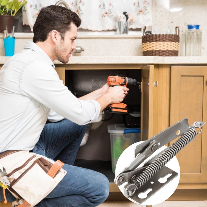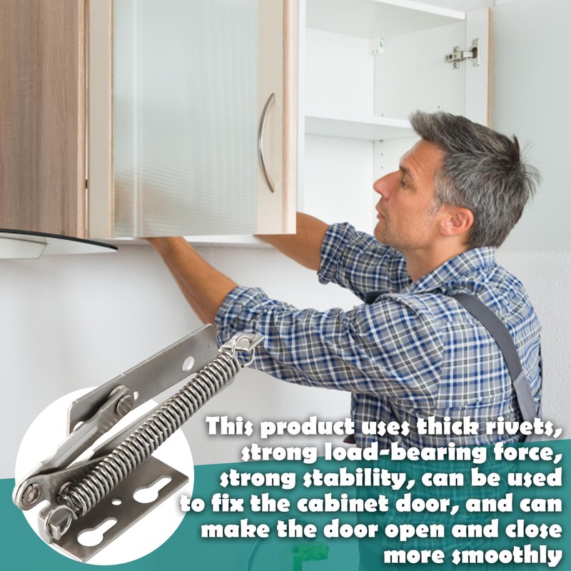 - Cabinet Hinges The set includes 2 heavy duty furniture spring hinges made of nickel plated steel, which last longer than ordinary metals and is scratch, corrosion and discoloration resistant.