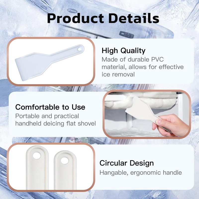- PREMIUM PVC MATERIAL Crafted from durable PVC, this ice scraper offers a perfect balance of strength and flexibility. It allows for thorough removal of ice without damaging the delicate surfaces of your refrigerator.