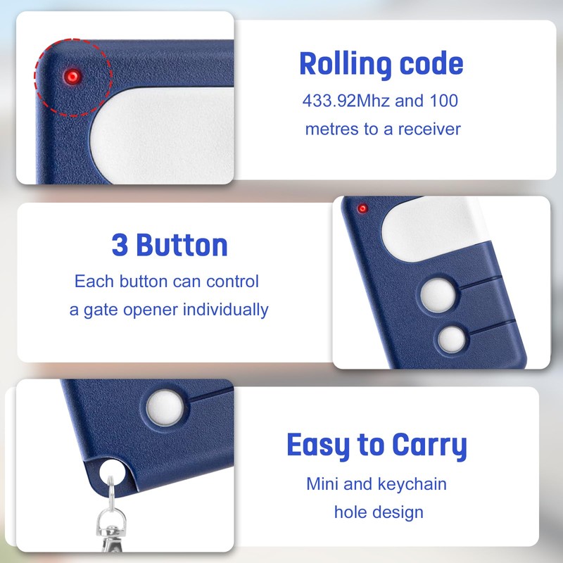- Easy programming: the garage door replacement remote control is already pre-configured and offers easy programming with 3 independent channels, each of which can control its own gate opener.