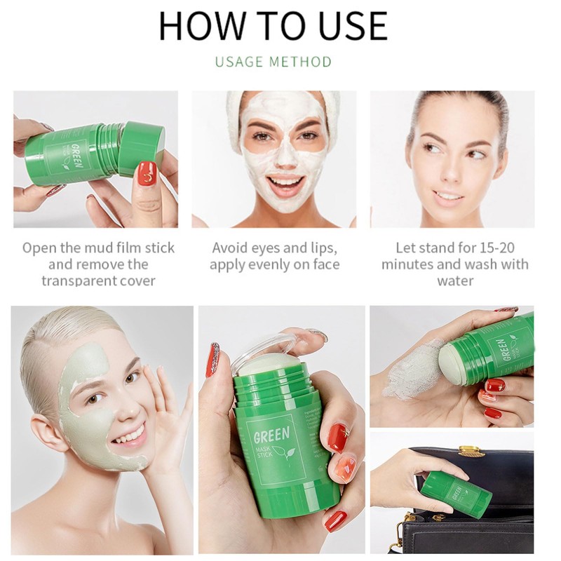 Pack of 2 Green Tea Cleansing Mask Stick, Green Tea Mask Stick, Moisturises and Controls Oil, Green Mask Clay Stick, Regulate the Water Face Mask for Skin Care Purifying