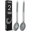Pack of 2 Large Silicone Cooking Spoons, Non-Stick Stainless Steel Slotted and Solid Spoon Set for Serving, Mixing, Draining, Heat Resistant, Scratch Resistant and BPA Free Kitchen Scoops (Grey)
