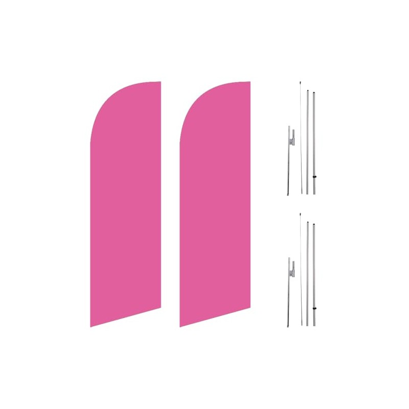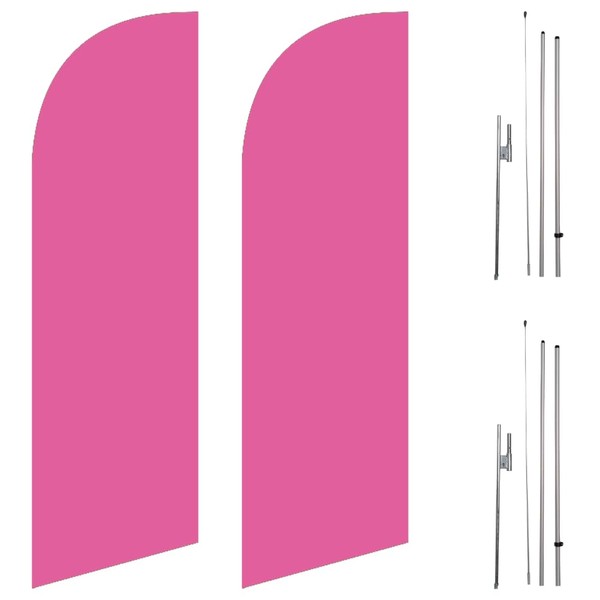 (Pack of 2) Light Magenta 6ft Medium Size Feather Flags Outdoor Signs with complete 8ft poles Kit, Pack Includes 2 Flags and 2 Poles with 2 Ground Stakes