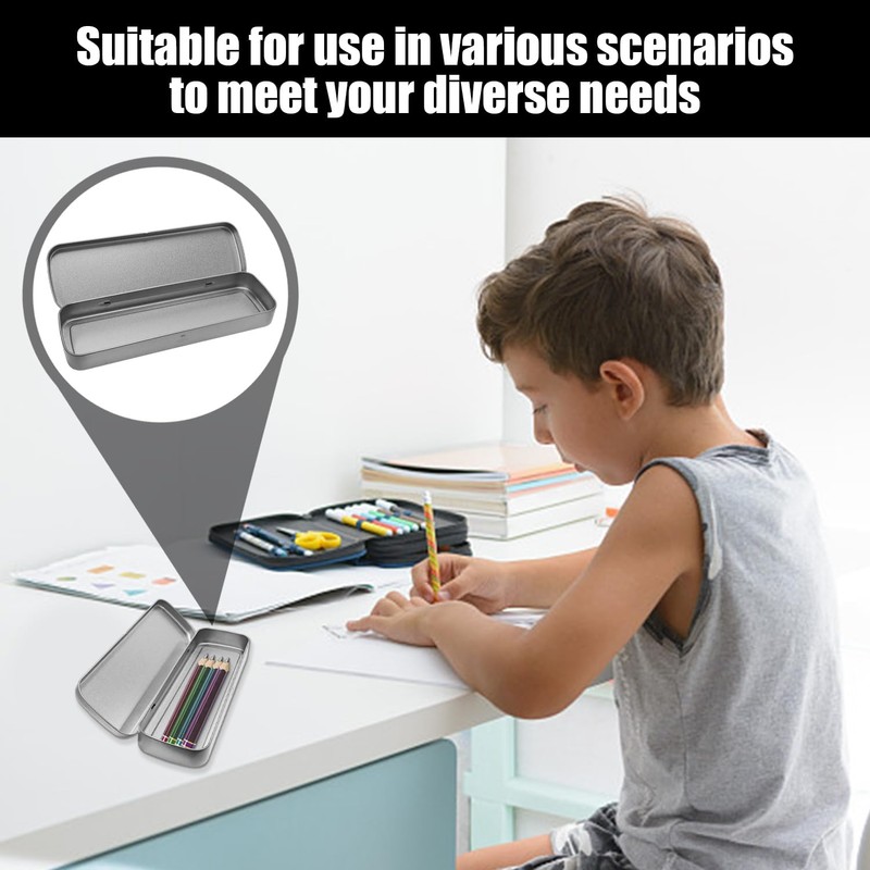 1. This pencil case is made of robust and durable iron material and has a rectangular flip-top design for easy storage and use.