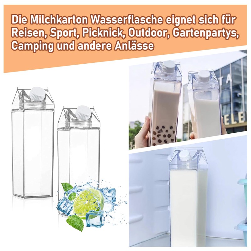 - The milk carton water bottle is suitable for travel, sports, picnic, outdoor, garden parties, camping and other occasions, you can easily add juice, milk, water and other things you want drink.