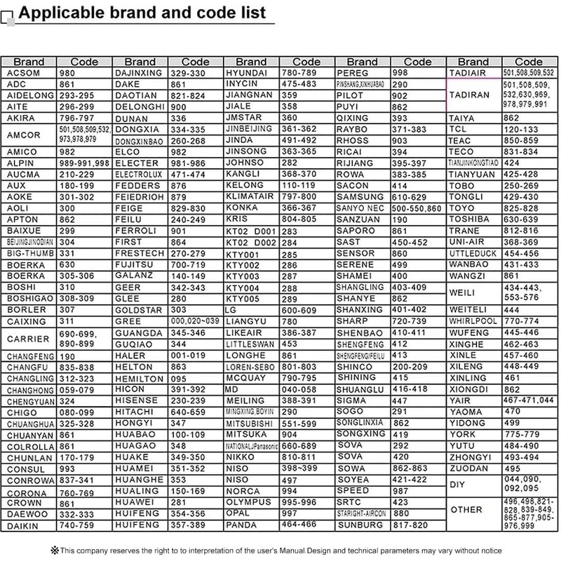 - [Compatibility] Universal air conditioning is compatible with up to 1000 air conditioning brands: Carrier, Daikin, LG, Samsung, Johnson, Panasonic, Mitsubishi, Funai, Fujitsu, etc. (Please check compatible models before purchasing to avoid purchasing incompatible products)