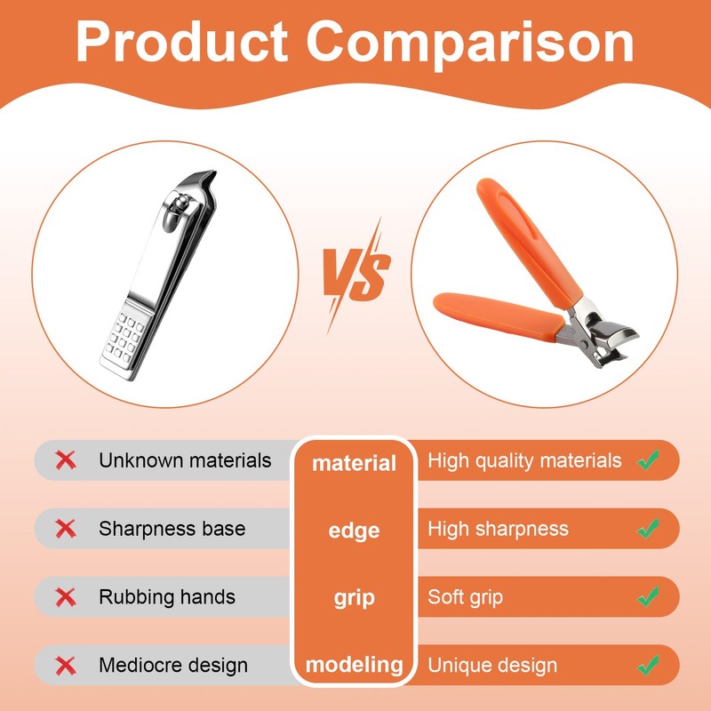 - ERGONOMIC SLANTED CUT - The slanted nail clipper follows the natural nail shape and cuts precisely even on ingrown nails - for well-groomed toes and fingernails.