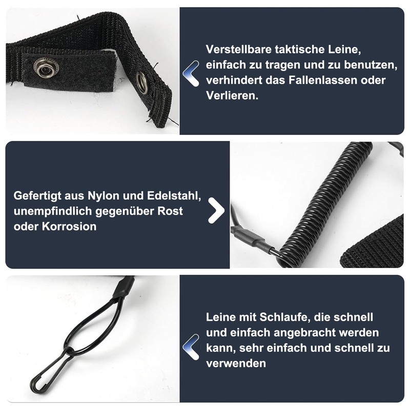 - 1. Robust paracord tactical lanyard. The paracord tactical lanyard is made of high-quality, rust-proof materials that ensure durability and flexibility. It provides reliable protection for your equipment and is ideal for use in police, military and security areas. The lanyard protects your devices from drops and loss and remains functional even in extreme conditions.