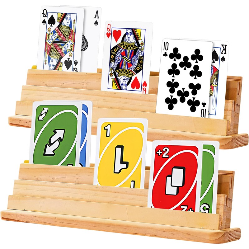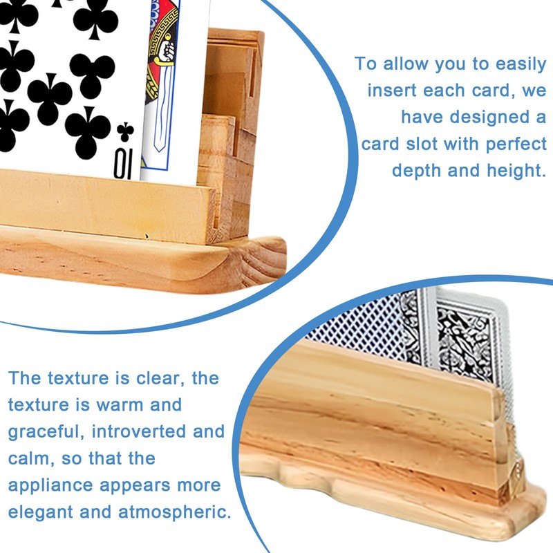 - High quality materials and workmanship: playing card holders for playing cards use high-quality pine wood materials to make the playing card holders for playing cards, which are purely handmade, with fine workmanship and smooth edges, durable and comfortable to use