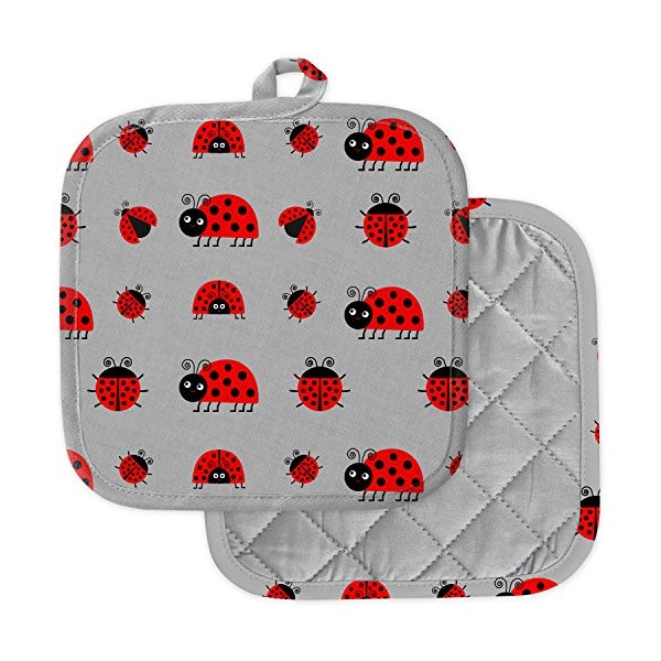 [Pack of 2] Pot Holders for Kitchen, Washable Heat Resistant Pot Holders, Hot Pads, Trivet for Cooking and Baking ( Ladybug Ladybird Icon Set Baby )