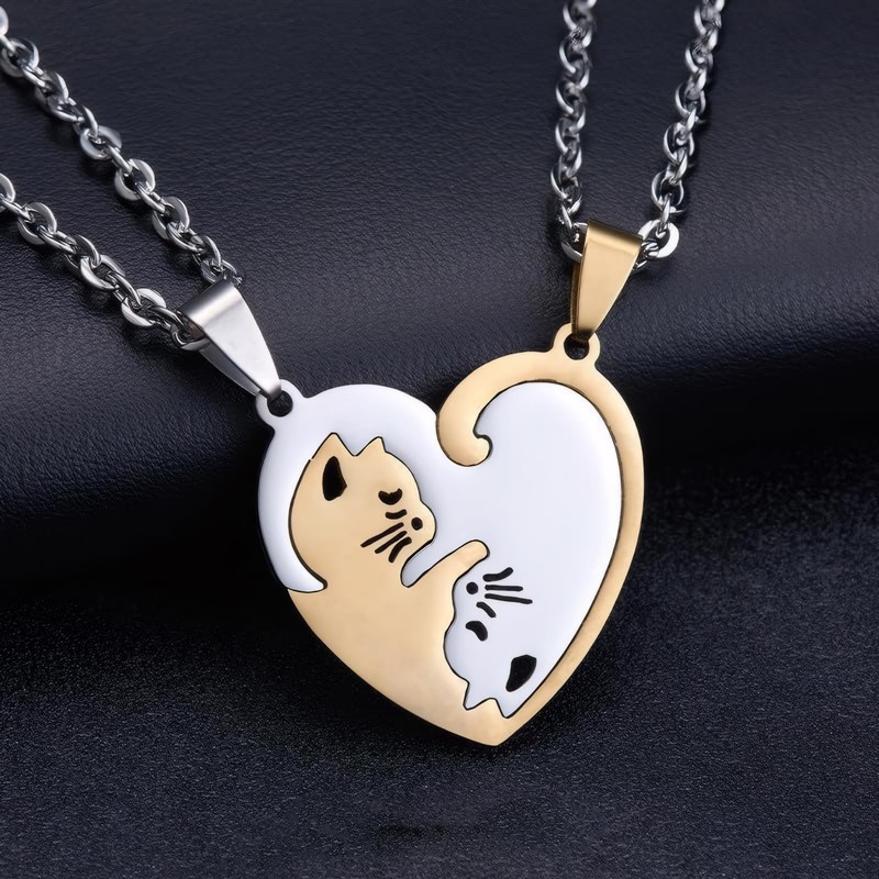 - Cat pendant couples necklace: this chain set is divided into golden and silver, cat-shaped pendant chains, is a beautiful symbol of friendship and connection. Two cats can be joined together to create a love pattern that has the meaning of eternal love.