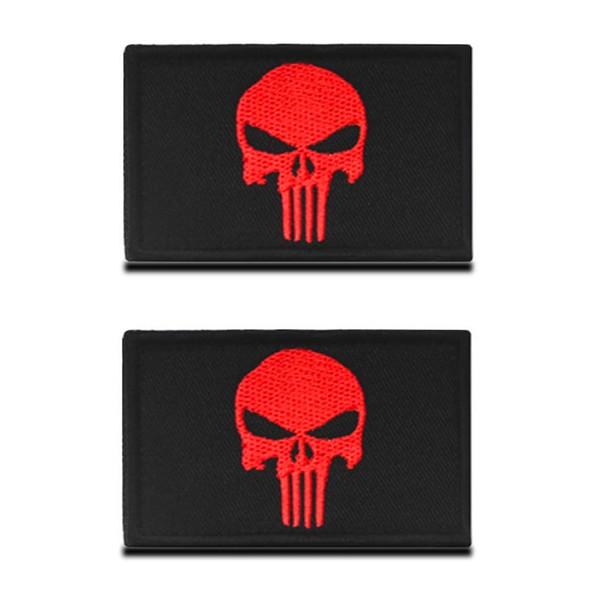 Pack of 2 Red Punish-er Skull Patch Airsoft Patch Military Patches Sticker Badge Bands for Airsoft Cosplay Paintball Tactical Clothing Backpack Uniform Vest Dog Harness