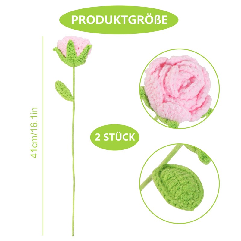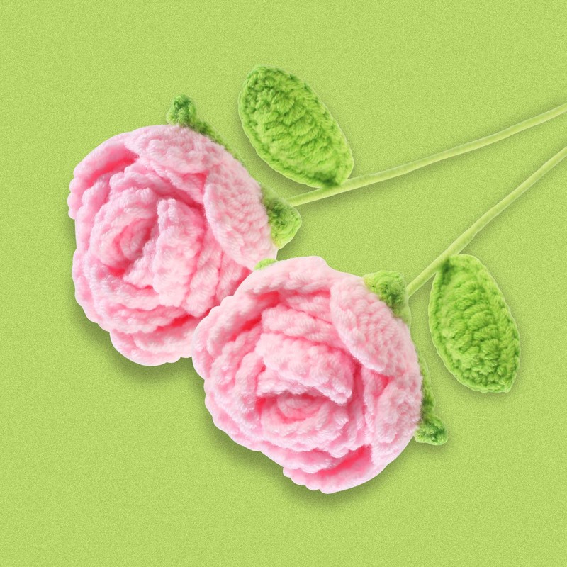 - Pink crochet flowers. An incomparable gift: these two pink roses crochet flowers with a length of 15.7 inches and a width of 2.5 inches are not only a beautiful decoration, but also perfect positive gifts and encouragement gifts to enjoy friends or family.