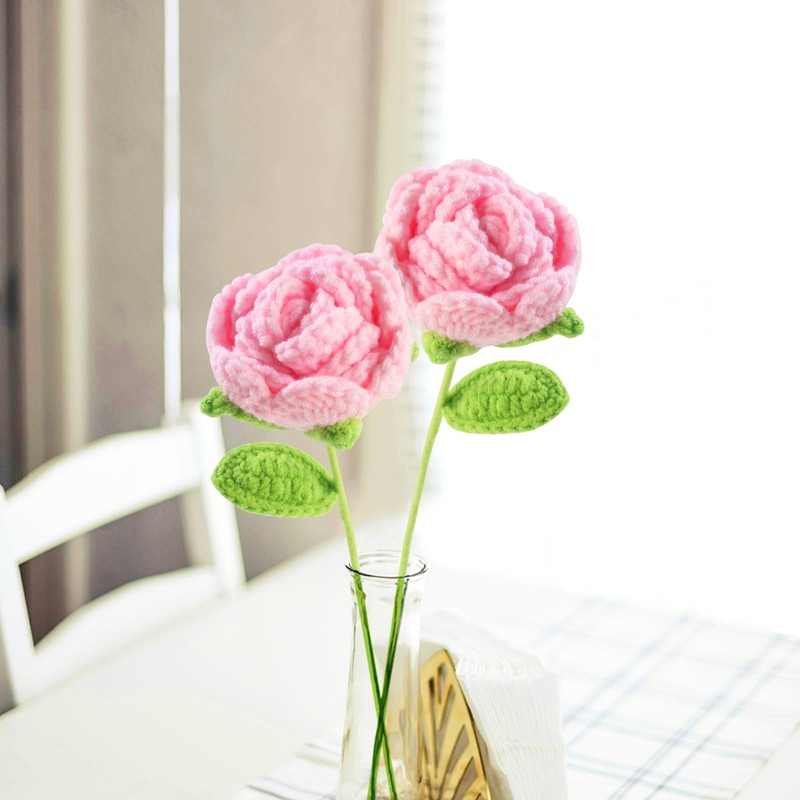 Pack of 2 Roses Crochet Flowers, Positive Gifts, Creative Hook Roses, Suitable for All Scenes and as a Good Way to Make a Gift to the Other