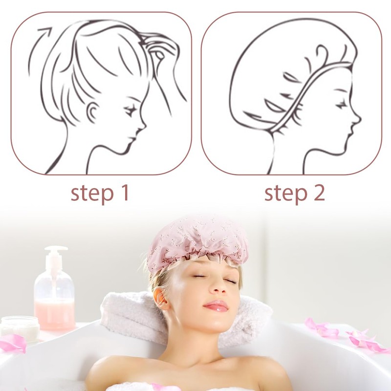 Double layer design: the reusable women's swimming cap features an internal double layer design that effectively keeps the hair dry, high-quality and waterproof. The shower cap has a light texture, easy to fold and store and is a must have for travel and business trips.