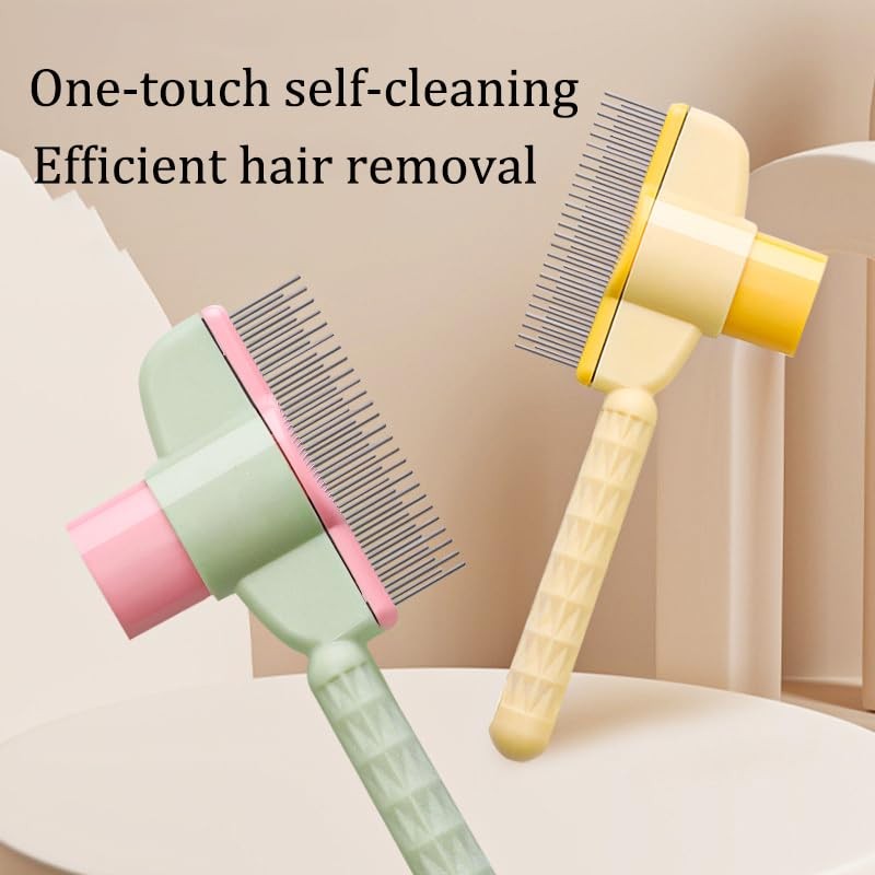 Pack of 2 Self-Cleaning Pet Brush, Dog Comb & Cat Brush Set, Grooming Comb for Short & Long Hair, Fur Flash Comb with Self-Cleaning Function (Green & Yellow)