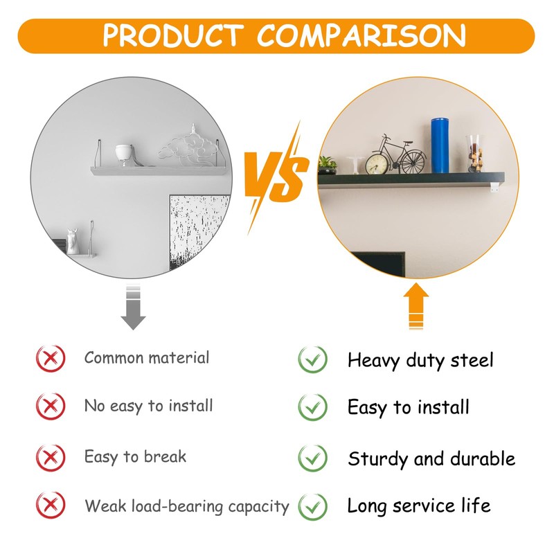 • Wide range of applications: suitable for kitchens, living rooms, bathrooms, bedrooms, courtyards, garages, offices, bars and other occasions, suitable for bookshelf brackets, cabinet brackets, furniture shelves, dividers, etc. for storing books and vases, photos and other small accessories.