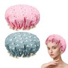 Pack of 2 | Shower Caps for Women, Double Layers Waterproof Bath Caps with Elastic Band, Reusable Shower hat for Keeping Hair Dry Kitchen Oil-proof Cap for Adults and Children