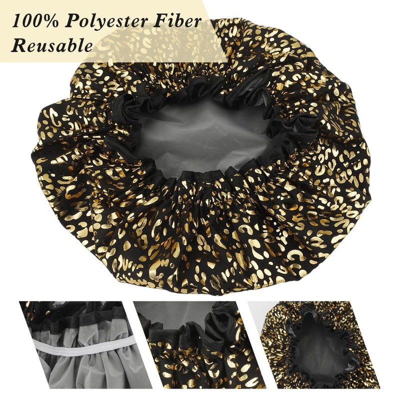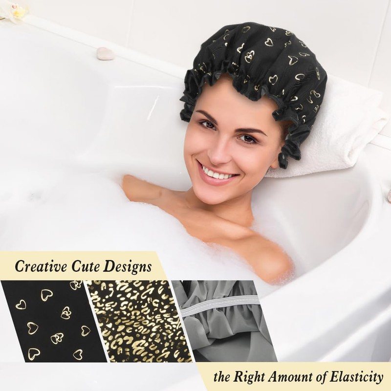 Pack of 2 Shower Caps for Women, Waterproof and Reusable Shower Caps