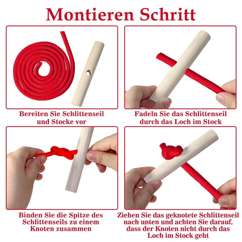 • Sledge rope with wooden handle set: you will receive: 2 x wooden rod handles, 2 x 1.5 m long PP (polypropylene) sledge rope, our sledge rope will be your best companion for free galloping in the world of ice and snow