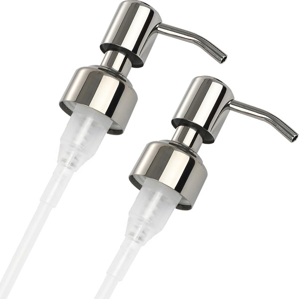 Pack of 2 Soap Dispenser Pump Head, Soap Dispenser Attachment, Soap Dispenser Replacement Pump, Soap Pump, Stainless Steel, for 28 mm Thread Bottle, Soap Dispenser (Brushed Silver)